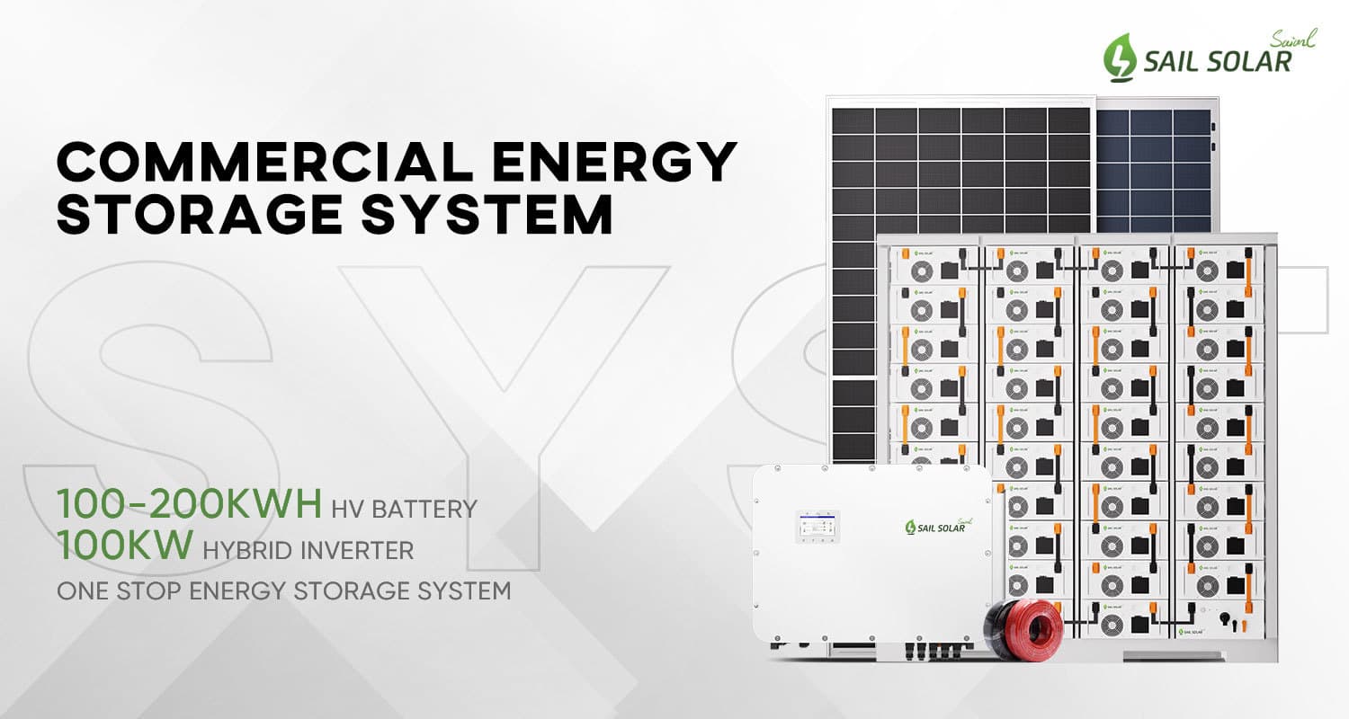 SAS100KW-HYSail Solar delivers end-to-end solar storage solutions for residential, commercial, and industrial applications, featuring a high-performance 100kW hybrid solar system with scalable 100kWh or 200kWh battery storage, the hybrid inverter for simplified integration and high efficiency, seamless on/off-grid transition for zero interruption during outages, and programmable operation modes to optimize for self-consumption, backup, or peak shaving—making it the perfect energy solution for industry and commerce