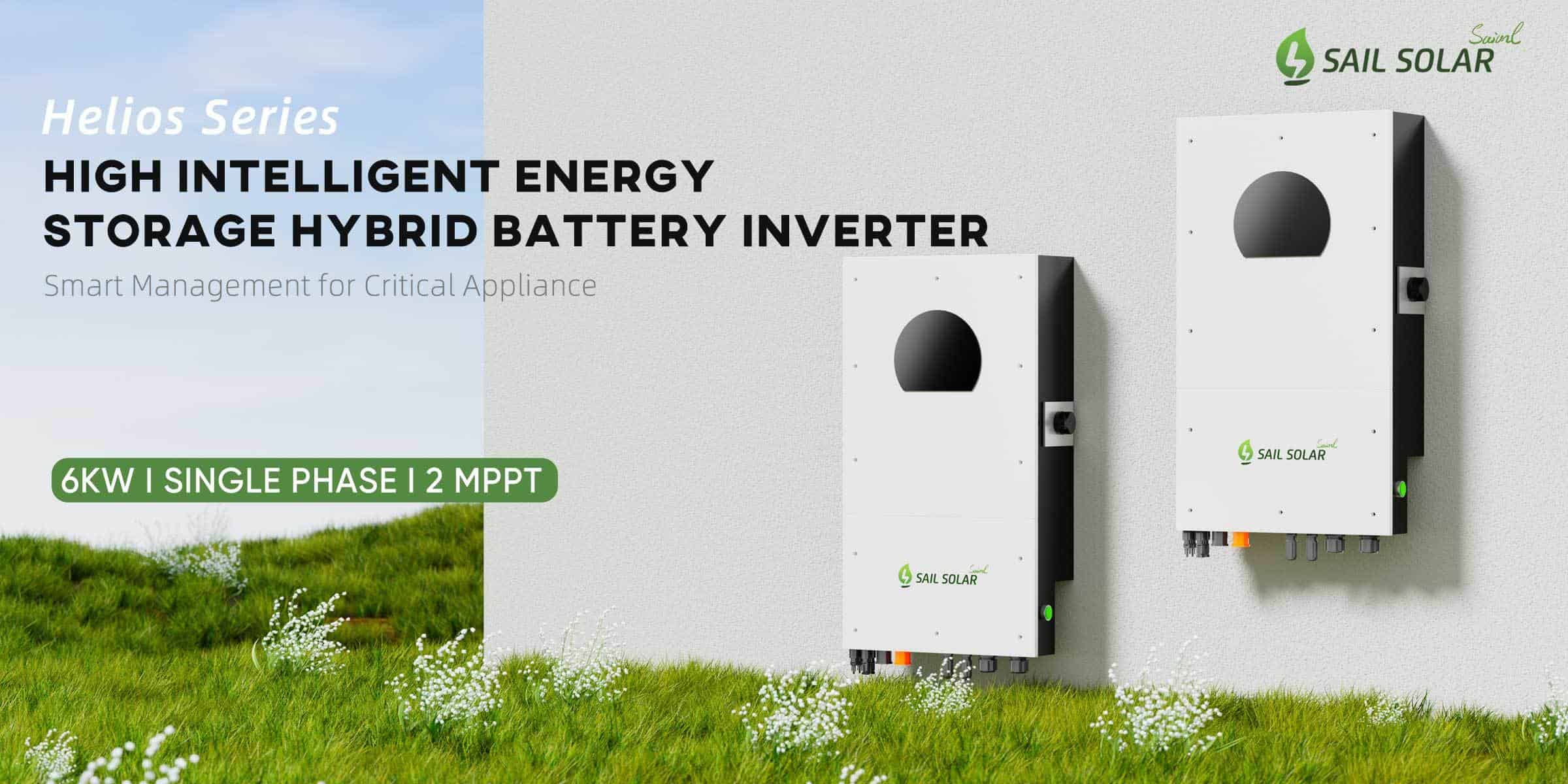 Helios-6KLP1-EU hybrid inverter supports parallel operation of up to 9 units, features dual outputs for smart load control, automatically connects and switches between two independent AC power sources.