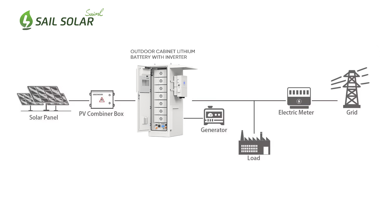Complete Kit Sail Solar 30KW 50KW Hybrid Solar Inverter with 100KWH Lithium Battery Outdoor All in One Energy Storage System
