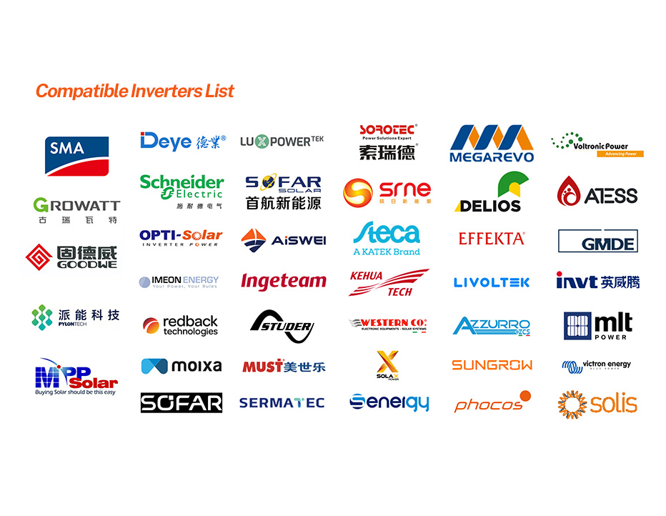 Sail Solar high-voltage lithium batteries are fully compatible with most mainstream solar inverters, including top brands such as Deye, Growatt, Goodwe, SRNE, Solis, EAST, and MEGAREVO. For distributors and installers working with these leading inverter brands, Sail Solar provides a reliable, plug-and-play battery solution that guarantees seamless integration and stable, long-lasting performance.