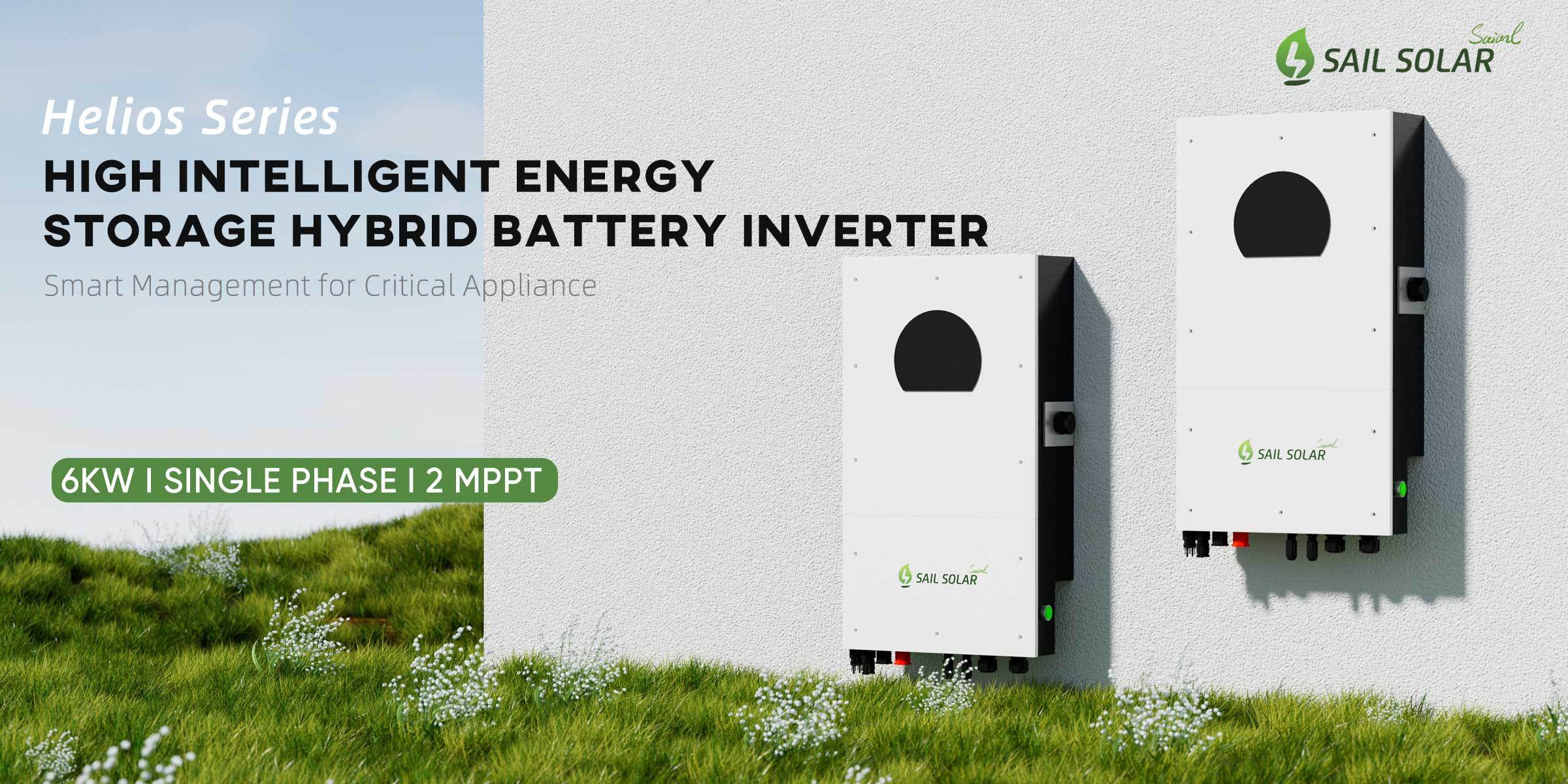 Helios-6KLP1-EUHelios-6KLP1-EU hybrid inverter supports parallel operation of up to 9 units, features dual outputs for smart load control, automatically connects and switches between two independent AC power sources, enables self-consumption and grid feed-in, allows programmable supply priority among photovoltaic (PV), battery, or grid, and incorporates built-in 2 Maximum Power Point Trackers (MPPT).