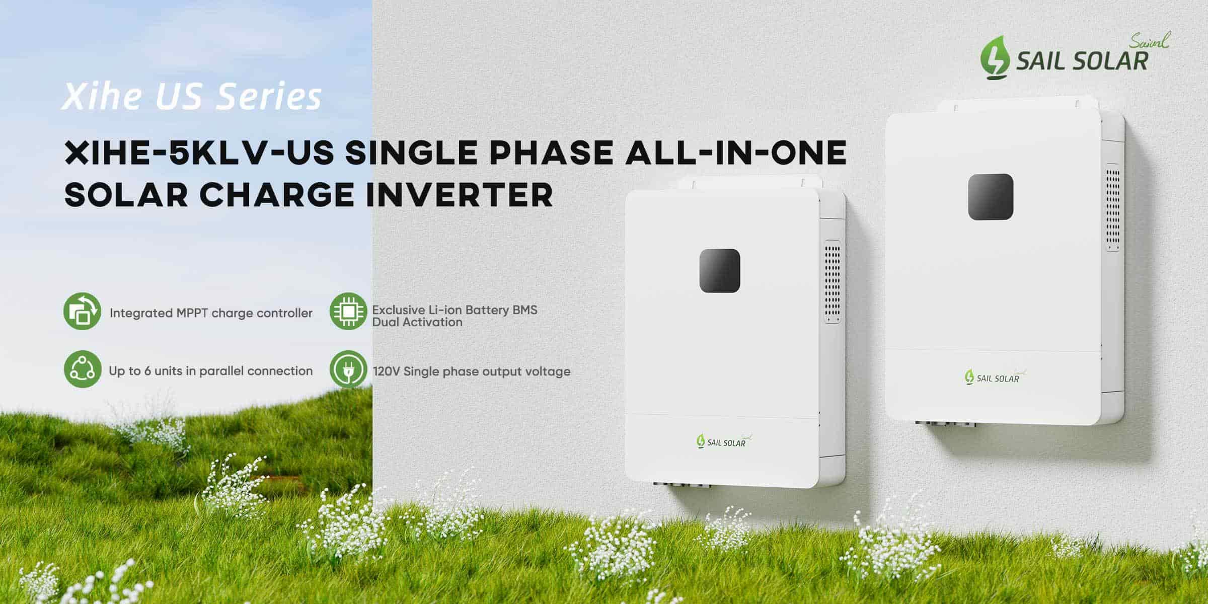 The Xihe-5KLV-US 120V single-phase solar charge inverter supports parallel operation of up to 6 devices, enables intelligent load control, and automatically connects and switches to independent AC power sources.