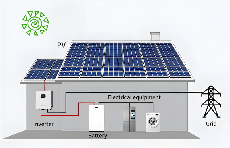 At the heart of the system is the Helios Series 25kW 480V Hybrid Solar Inverter, a cutting-edge device equipped with a vibrant colored LCD display for easy monitoring and operation. Designed to meet modern energy management needs, it features multiple communication functions, allowing users to effortlessly monitor and control the system through a dedicated mobile phone app. Whether at home or on the go, remote operation ensures maximum convenience and flexibility.