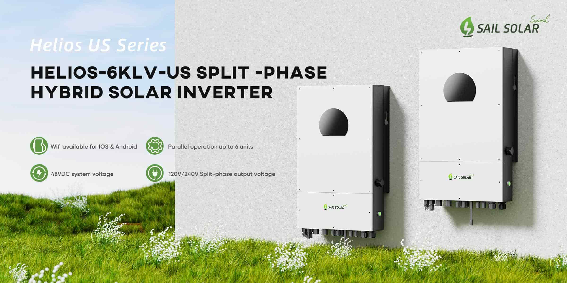 The SAIL SOLAR Helios-6KLV-US hybrid inverter extends battery life through communication with a battery management system (BMS), enhances reliability through grid integration, and maximizes solar energy utilization. Flexible to meet your energy needs, while optimizing cost savings and efficiency.